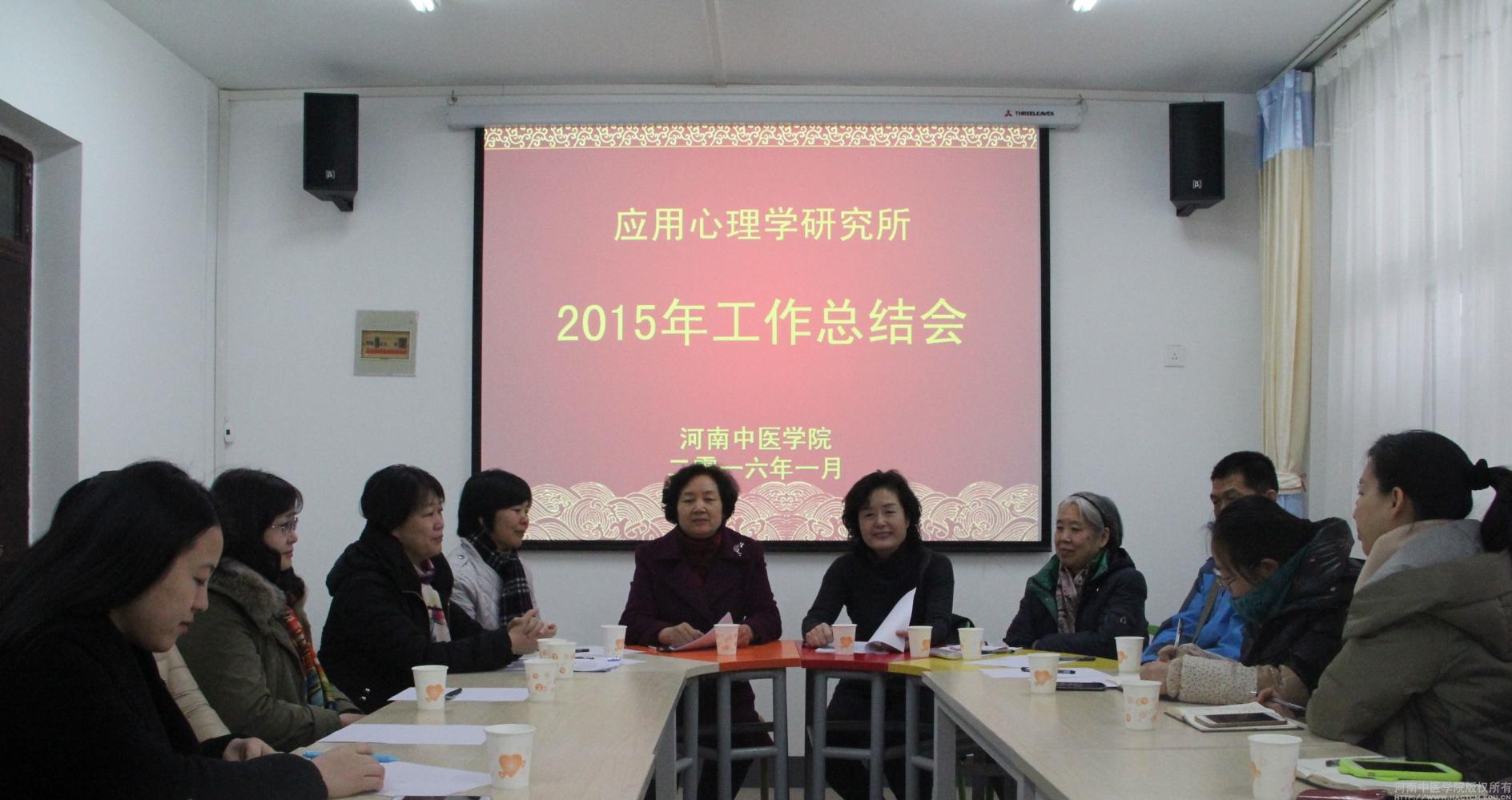 2016年1月19日上午,我校应用心理研究所在心理咨询中心召开了2015年度工作总结会。研究所所长徐玉芳教授、校党委张丽霞副书记、人文学院院长张丽青教授、我校养生专家韦大文教授及研究所全体成员20余人参加了会议。会议由人文学院院长张丽青教授主持。
