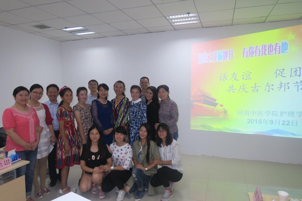古尔邦节是我国回、维吾尔、哈萨克、乌兹别克、塔吉克、塔塔尔、柯尔克孜、撒拉、东乡、保安等少数民族共同的盛大节日。今年的9月23日是古尔邦节,在节日到来之际,护理学院党总支于9月22日晚,在新校区举办了以“话友谊、促团结、共庆古尔邦节”为主题的茶话会,师生共庆古尔邦节,为远在护理学院就读的少数民族同胞送上节日祝福。护理学院党总支书记尹丽、副书记孟长海、副院长秦元梅和新疆维吾尔族和哈萨克族同学、学工办全体老师以及班级学生代表参加了茶话会。