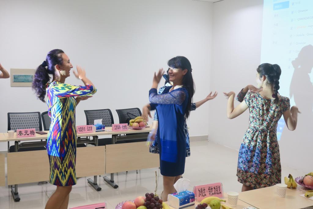 茶话会进入高潮时分,新疆姑娘玛依努尔带领在场新疆姑娘们热情展示了曼妙优美的民族舞蹈。来自新疆的5个小姑娘同在场老师、班级同学一同跳起优美的舞蹈,整个茶话会其乐融融,汉族与少数民族、老师与学生一起互祝问候,共庆这一美好节日。(护理学院)