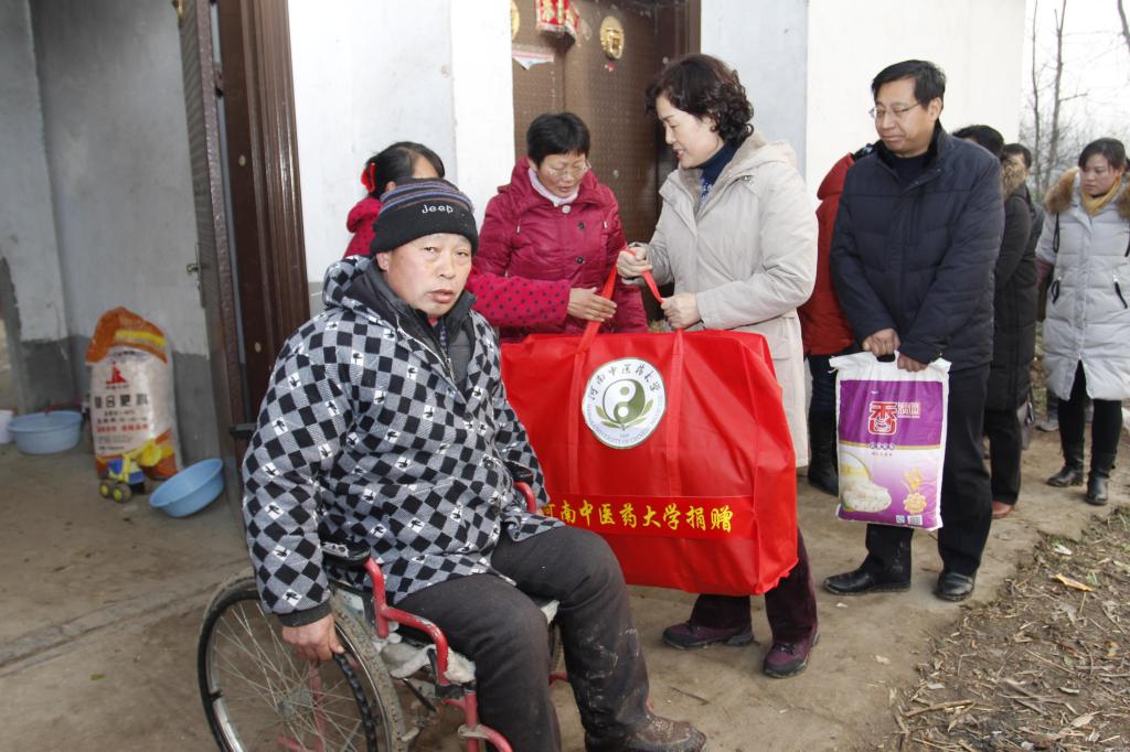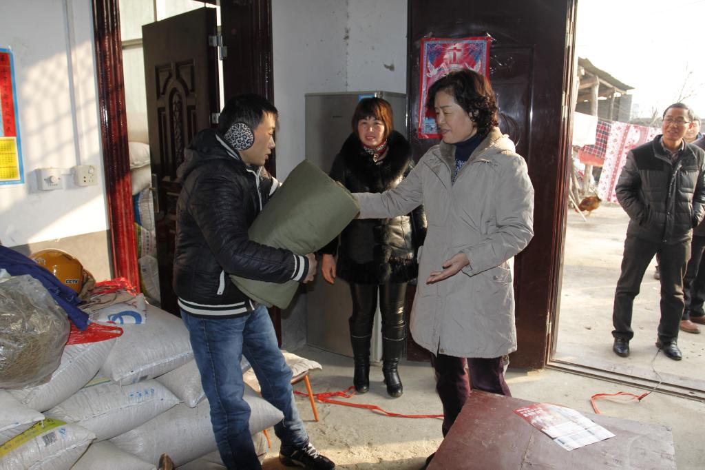 随后,张书记一行踩着带着雨雪的泥泞小路深入到特困户家中走访慰问,送去了大衣、棉被和米、面、油等生活用品。这些家庭中有的是家人身有残疾、有的是重病在身、有的是孤寡老人,生活十分贫困。张书记一行每到一处都嘘寒问暖,鼓励他们树立信心,战胜困难。扶危济困促和谐,一点一滴总关情,我校师生的爱心犹如冬日暖阳,为留守儿童和特困家庭送去暖暖春意。(撰稿:蔡信强;摄影:杨斌)