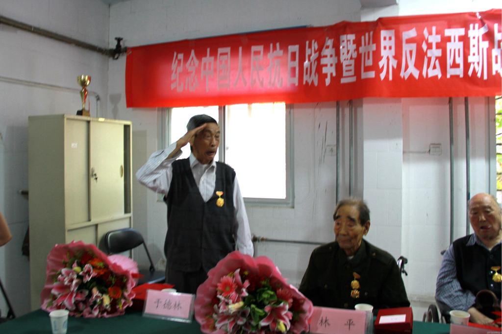 林平曾任我校党办主任,早年在沂蒙地区参与游击战,担任过营长职务。在回忆那段艰苦卓绝的革命生涯和为抗战奉献生命的战友时,他不禁眼含热泪,表示能够参会接受国家和学校的嘉奖和问候真是“既高兴又沉重”,他十分感激校领导的关心,也非常思念为祖国和民族独立奋斗终身的人们,并难掩激动,高呼“祖国万岁”。于德林曾任我校教务处副处长,14岁便跟随八路军在前线救治伤病员,拥有32年军龄,他强调了胜利的来之不易,并用一个标准的军礼表达他对国家和学校的敬意。谷琛虽未直接参与抗战,但始终在后方为革命的向前推进默默贡献着自己的力量。