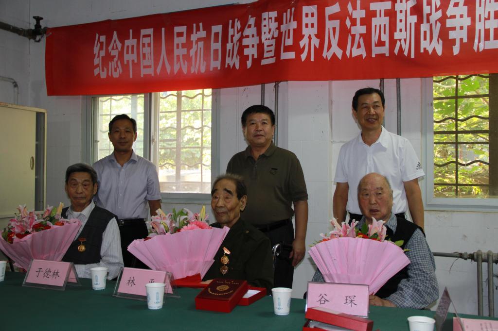 2015年9月2日下午,我校在东明校区召开纪念中国人民抗日战争暨世界反法西斯战争胜利70周年座谈会。校党委书记孙建中、党委副书记、院工会主席段荣章、副院长徐江雁出席座谈会,与林平、于德林、谷琛三位曾为中国抗日战争作出贡献的我校离退休干部共同回顾历史,缅怀先烈,祝福明天。党院办、党委宣传部、离退休职工工作处等部门相关同志参加座谈会。会议由党委副书记、院工会主席段荣章主持。