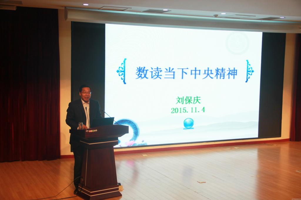 2015年11月4日中午,我校第25期业余团校暨学生干部培训班在图书馆第一报告厅正式开课。学校党委宣传统战部部长刘保庆为同学们作了题为《数读当下中央精神》的首场报告。报告会由校团委副书记高磊主持。
