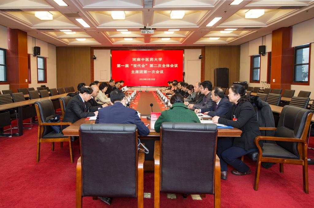 随后,许二平对2019年重点工作进行了安排部署。他指出,2019年学校工作的总体思路是:以习近平新时代中国特色社会主义思想为指导,全面贯彻党的教育方针,以立德树人为根本,以内涵建设为重点,全面深化改革,全面从严治党,认真落实省委巡视整改任务,全力推进学校转型发展,以优异成绩向中华人民共和国成立70周年献礼。他强调,2019年要做好八项重点工作,即坚持党的全面领导,进一步提升党建工作水平;坚持以本为本理念,进一步提高育人工作质量;坚持学科龙头引领,进一步提升学校办学水平;坚持科研持续支撑,进一步助力学校转型发展;坚持“人才兴校”战略,进一步加强教师队伍建设;坚持推进开放办学,进一步提升社会服务能力;坚持深化全面改革,进一步提升学校管理水平;坚持服务师生宗旨,进一步强化保障改善民生,争取在“十三五”期间使学校迈进全国中医药院校前列,在出彩河南的建设中使中医更出彩。