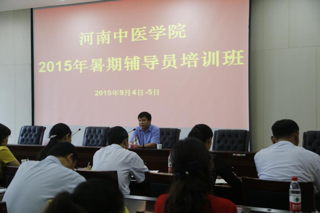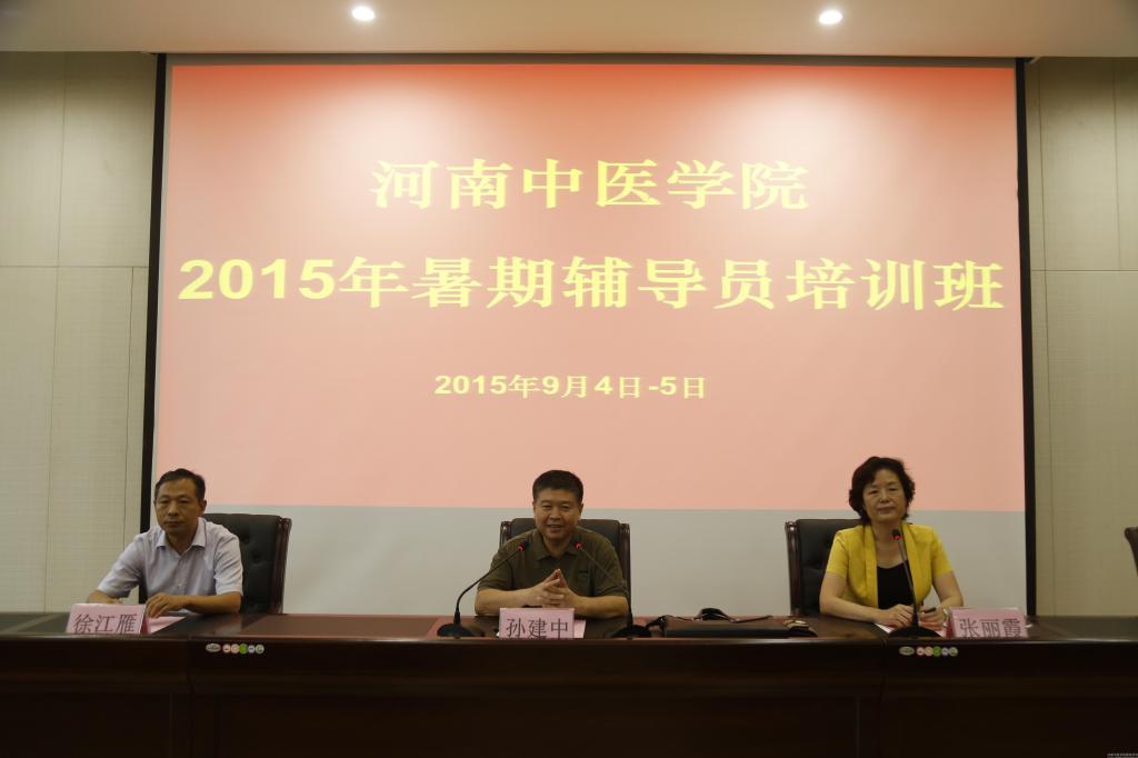 为进一步提升我校学生工作队伍工作能力与水平, 2015年9月4日-5日,学工部会同党委组织部、研工部联合举办了我校2015年暑期辅导员职业能力提升培训班。培训班邀请了教育厅思政处徐军保主任、教育部首批思想政治教育中青年杰出人才支持计划培育对象、全国辅导员年度人物重庆大学蒲清平教授、全国辅导员年度人物郑州大学副处级辅导员孙锦峰等为培训班授课。学校党委书记孙建中出席培训班开幕式并讲话,党委副书记张丽霞、副院长徐江雁全程参加了培训班,学工部、研工部全体成员及各二级学院主管学生工作的领导和全体辅导员参加本次培训。培训班由张丽霞副书记主持。