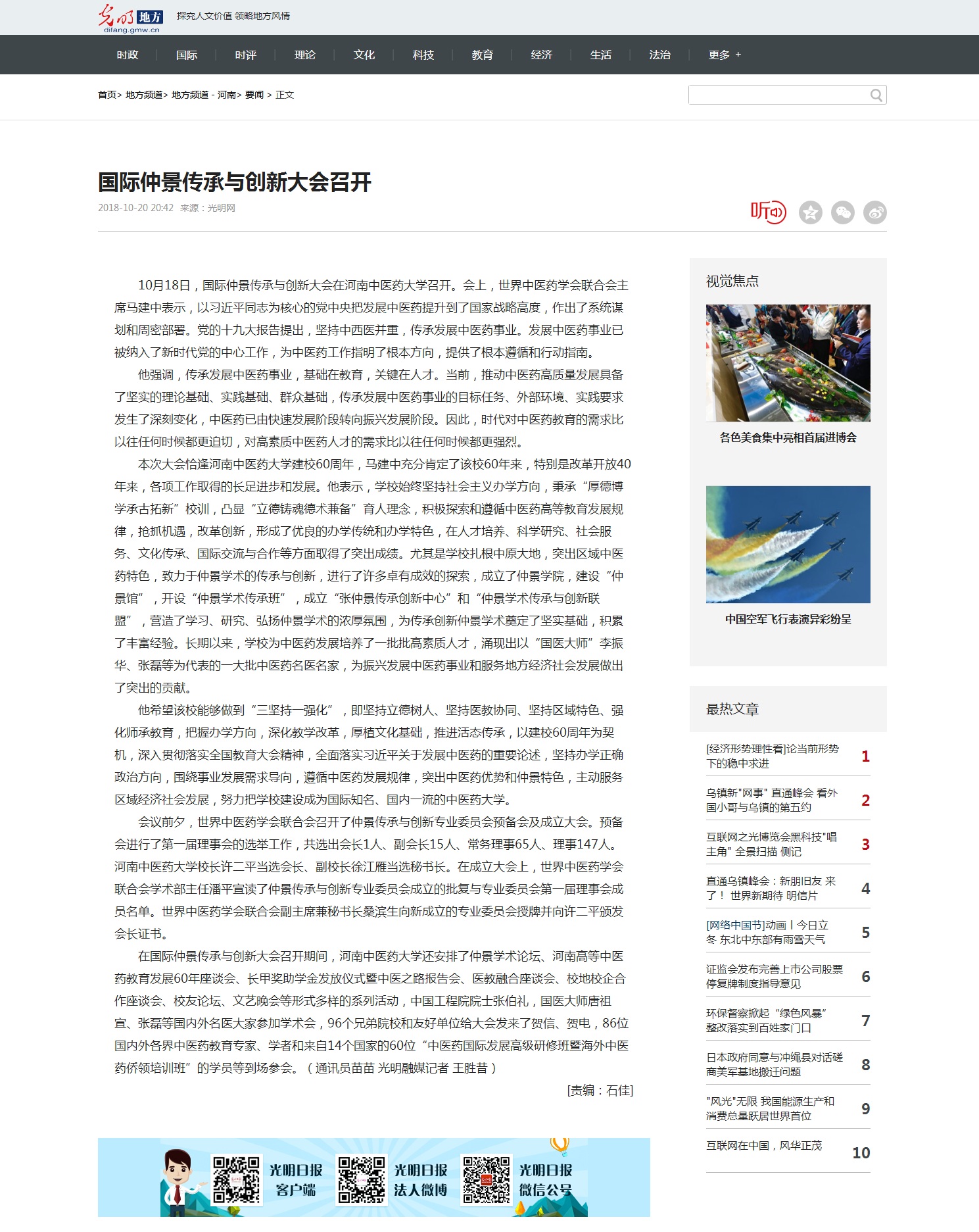 光明网、中国中医药报(头版)、河南日报、河南电视台、大河网、大河健康报、医药卫生报等省内外媒体密切关注并广泛报道会议的召开。现将部分媒体的报道情况汇总如下。(苗苗)
