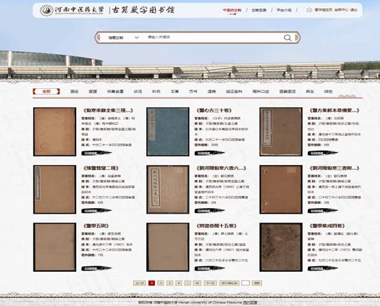 “古籍数字图书馆”内容按医经、医理、伤寒金匮、诊法、针灸、本草、方书、温病、临证各科、喉科口齿、医案医话、养生等分类,支持关键词检索、多字段模糊检索、简繁自动识别、全书原版原貌展示等功能,并提供批注、书签、收藏、高清放大等便捷功能。
