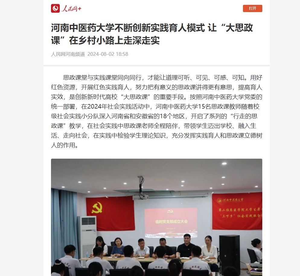 师生走进乡村,感受社会发展,思政课教师可以让抽象的理论生动起来,师生就支部建设、乡村振兴、河南中医药非物质文化遗产保护和开发等专题进行专题研讨和调研,深入了解新时代农村发展现状、乡村振兴新策略。