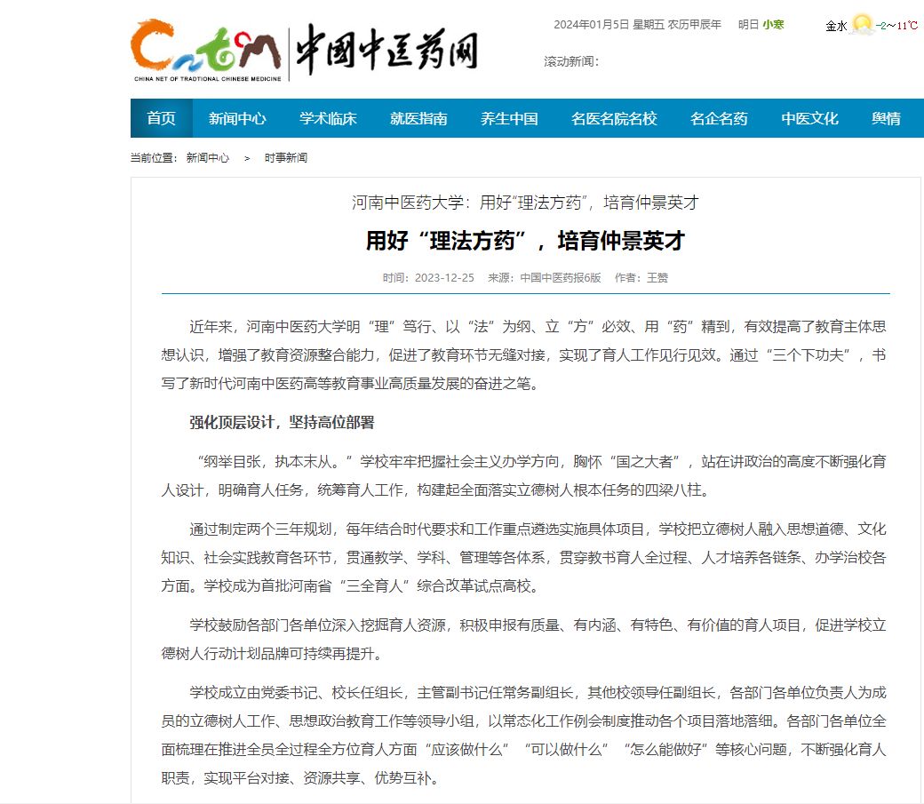 “内外调和,邪不能害。”学校深耕育人沃土,不断深化改革,在压实责任、提升质量、站稳阵地、涵养环境上做文章,为培养高质量的中医药人才塑造“不扶自直”的育人生态。