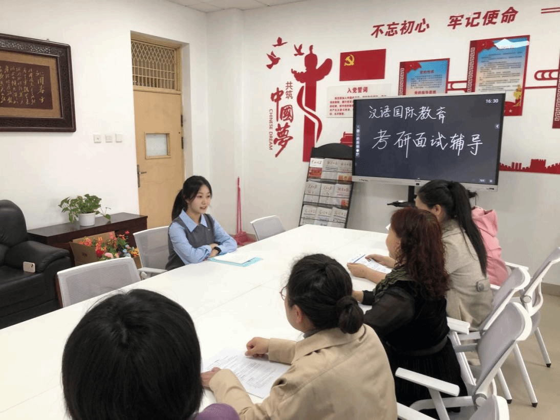 3月11日下午,线下考研模拟面试辅导活动在外语学院党员活动室举行。活动分为英语口语测试、专业课面试、综合面试三个环节。由汉语国际教育教研室的教师们担任模拟面试官,从面试礼仪、语言表达和逻辑思维能力等维度对学生的表现进行细致点评,并给出了针对性的改进建议。通过身临其境地模拟体验,学生们不仅熟悉了考研复试的流程和氛围,掌握了面试技巧,更清晰地认识到存在的问题和改进方向。