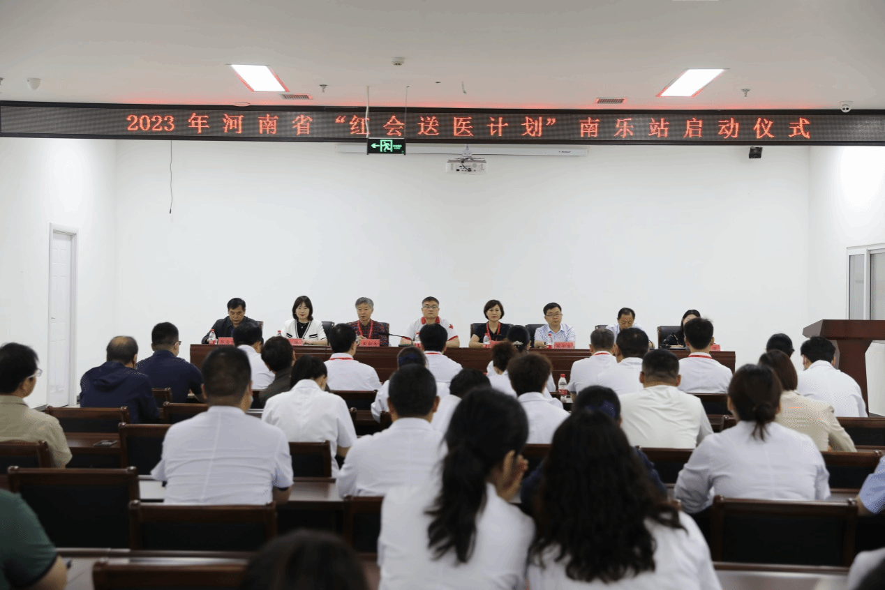本网讯(文/马彦江 图/李瑞)近日,河南省“红会送医计划”南乐站启动仪式在南乐县中医院举行。河南省红十字会办公室副主任刘国明,四级调研员、培训中心主任陈洋,一附院党委委员、工会主席乔东鸽及专家志愿者团队,濮阳市红十字会党组书记、常务副会长薛全奎,南乐县政府党组成员、副县长、县红十字会会长宋士宁,卫健委党组书记、主任郭自强,红十字会常务副会长张丽,中医院院长苏军岭,南乐县各医疗机构干部职工代表百余人参加活动。张丽主持启动仪式。