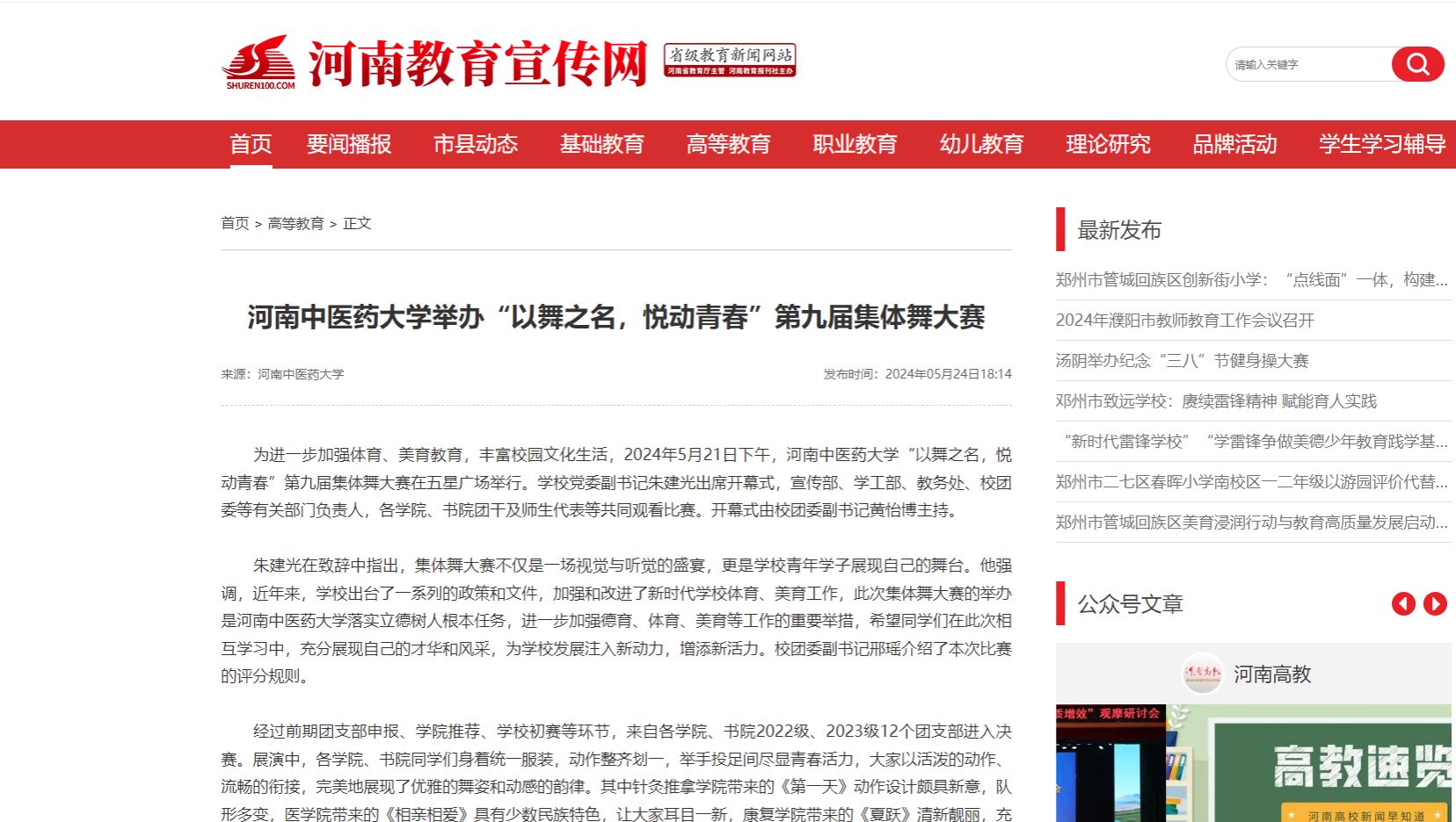 河南教育宣传网丨乐动网页版登录入口,乐动(中国)举办“以舞之名,悦动青春”第九届集体舞大赛