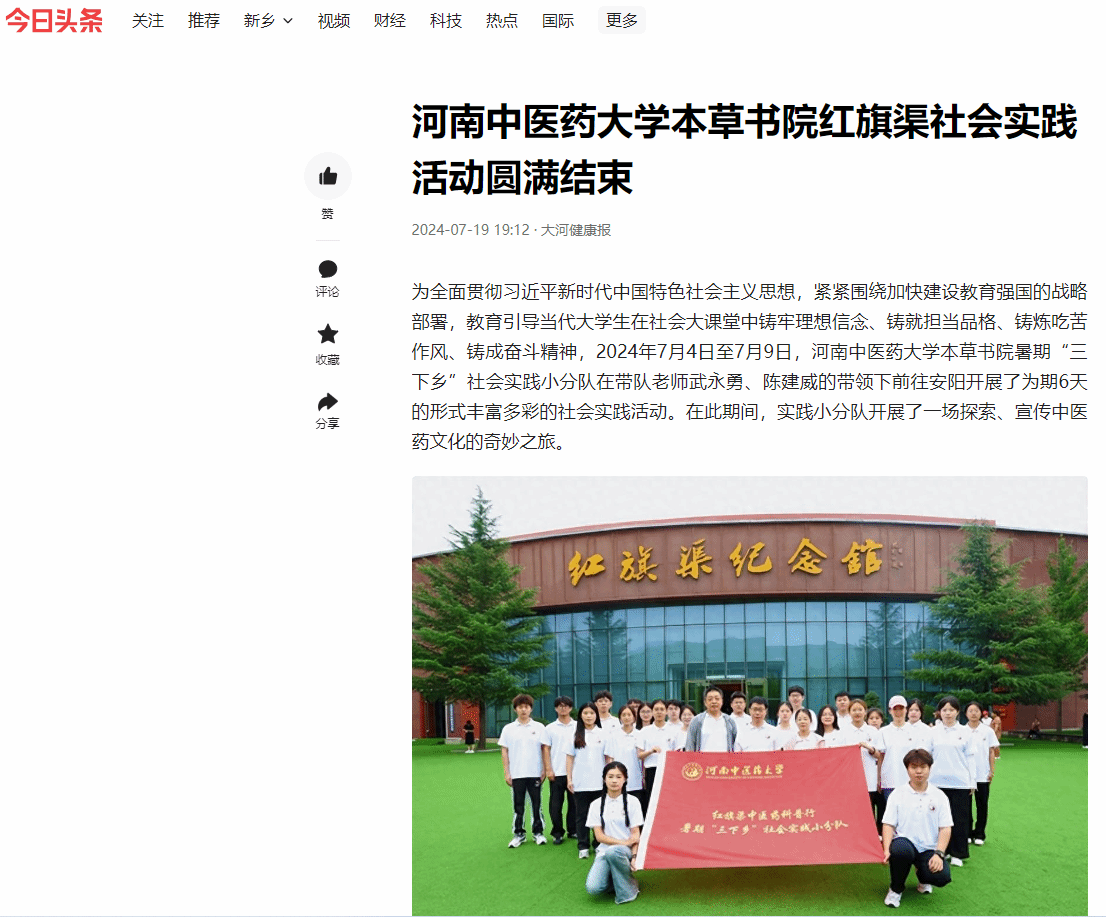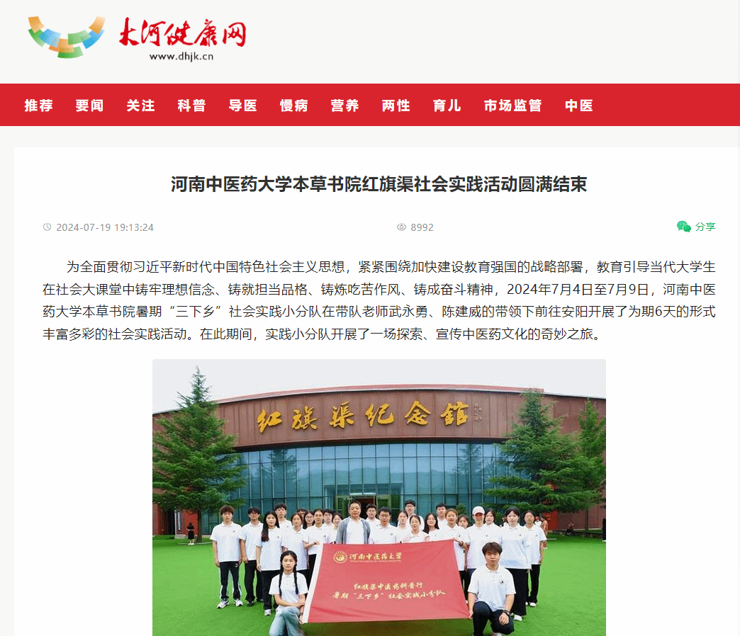 河南日报等|乐动网页版登录入口,乐动(中国)本草书院开展暑期“三下乡”社会实践活动