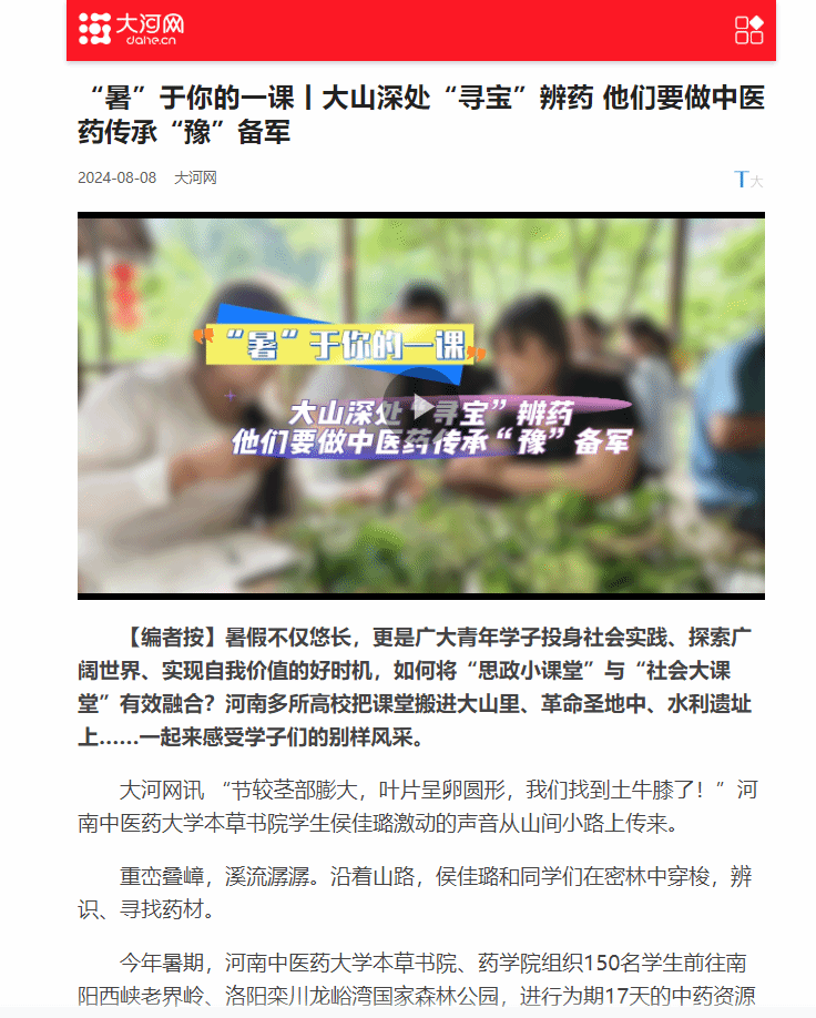 “中药资源学野外实习实践活动是专业实践锻炼的重要环节。”张田丽表示,“未来,我们将持续开展暑期上山采药实践活动,不断完善和优化书院实践育人方案,深化双院协同,不断提高学生培养质量,为中医药强省建设提供人才支撑。”(刘高雅/文 张舒婷/海报 实习生 王冰雁)