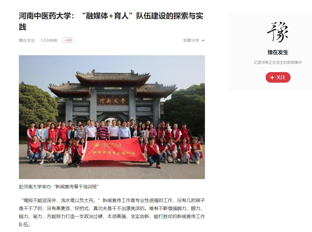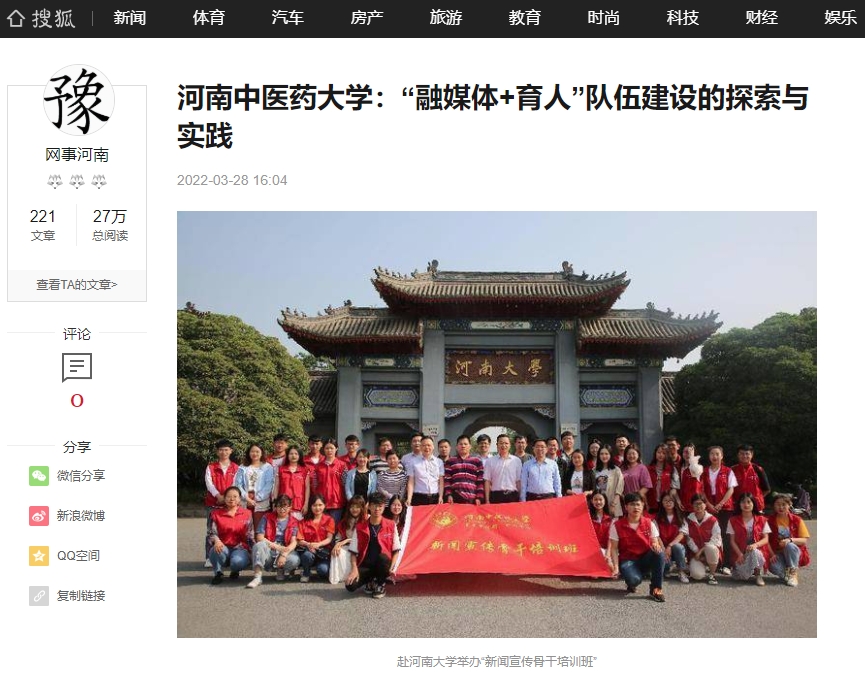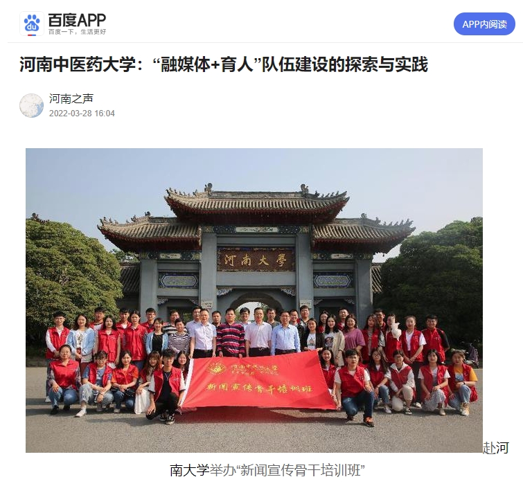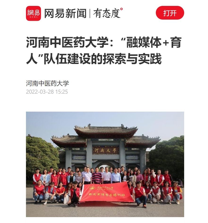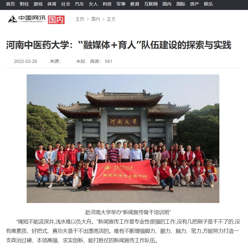 编者按:2022年3月28日,前途中国网、美丽中国报、科技中国、缤纷中国、创业中国、经典中国、中国侨报网、中国健康周刊、中国网讯、网易新闻、百家号、今日头条、一点资讯、企鹅号、搜狐新闻等多家媒体对我校“融媒体+育人”队伍建设中的探索与实践进行报道。