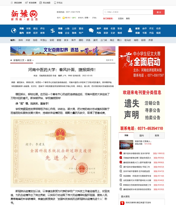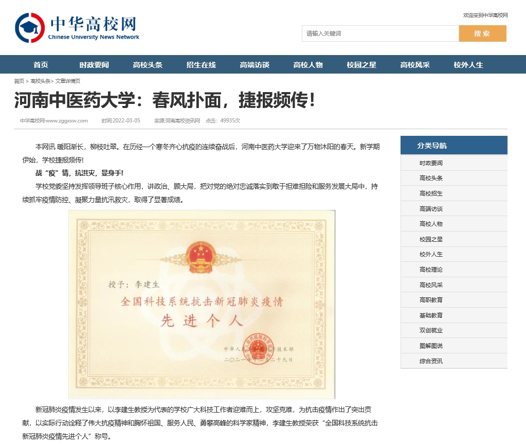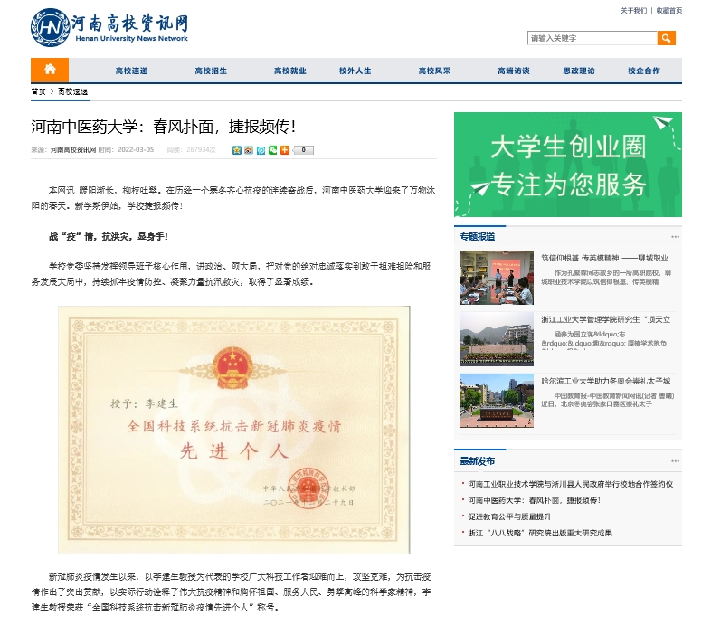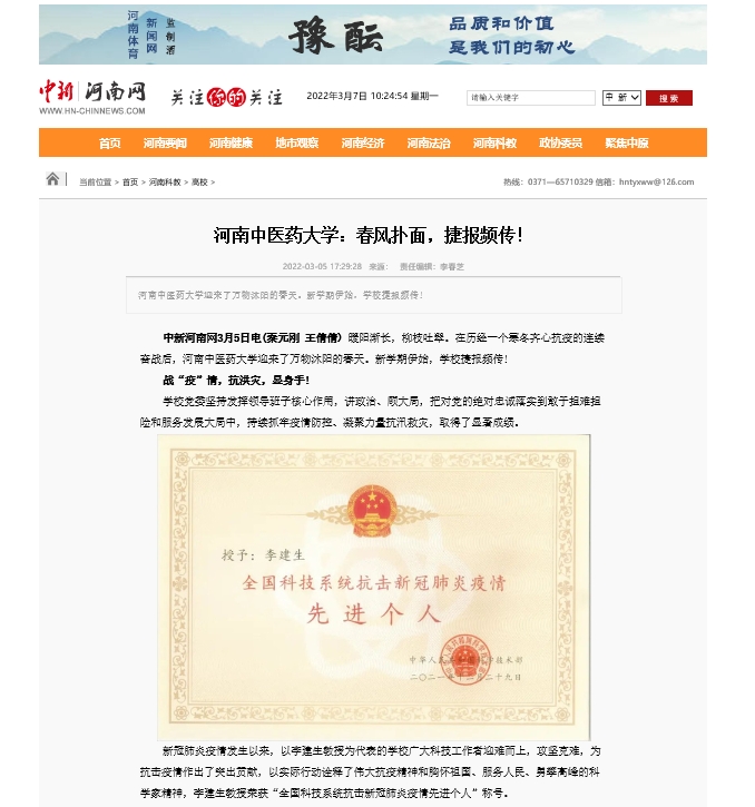 编者按:2022年3月5日,中华高校网、河南高校资讯网、中新网、新豫网、河南高校行等多家媒体对我校多项捷报进行报道。现全文刊发如下: