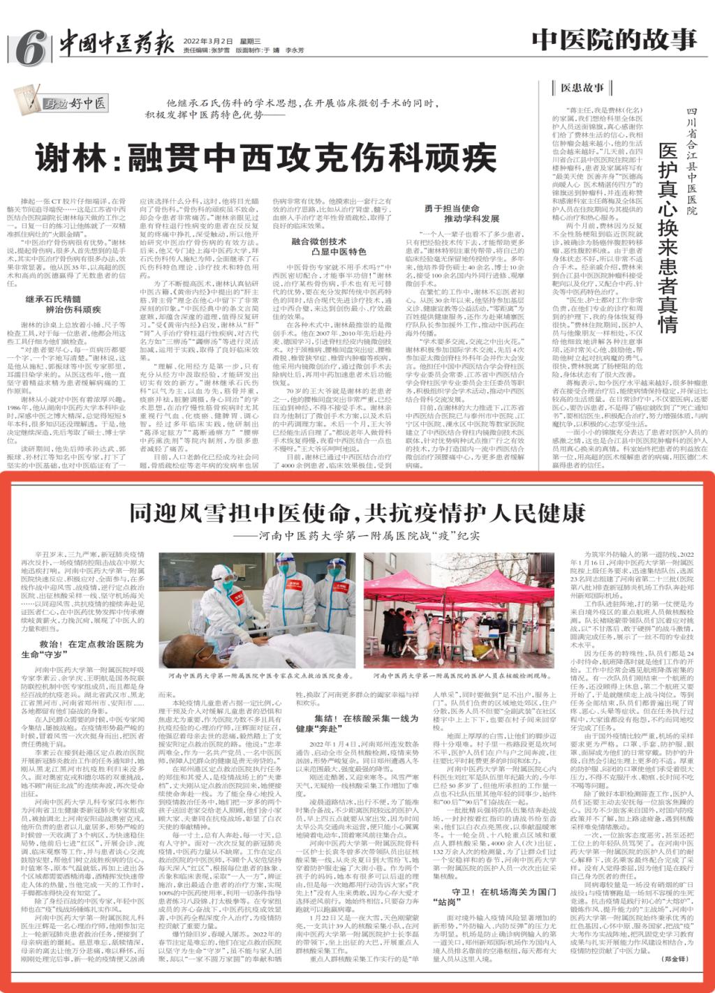 编者按:2022年3月2日,中国中医药报以《同迎风雪担中医使命,共抗疫情护人民健康》为题,对一附院春节前后的战“疫”工作进行了纪实报道,现全文刊发如下。