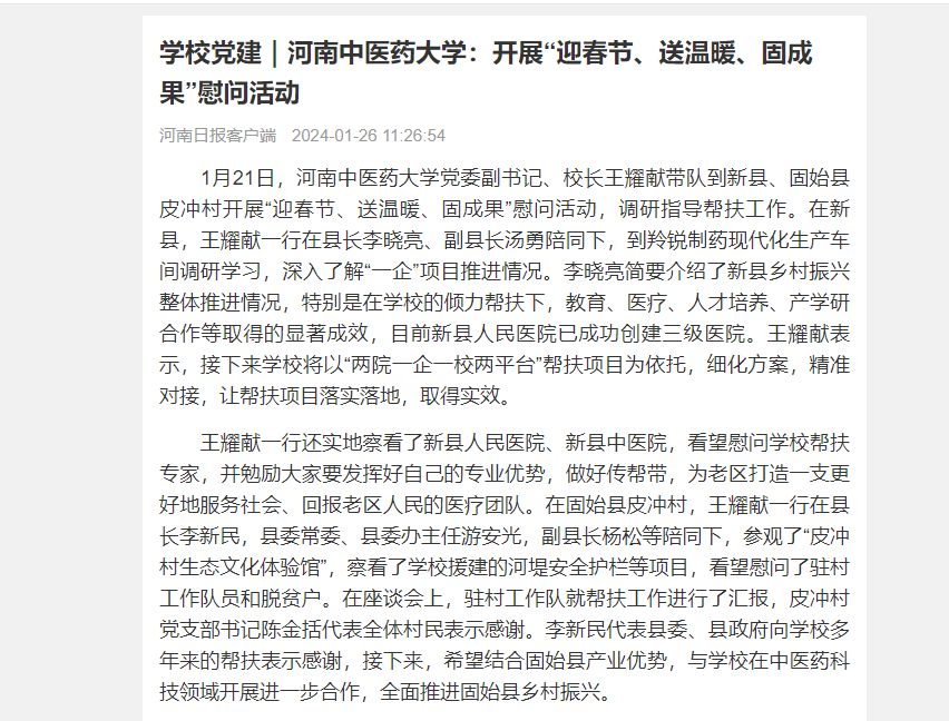 河南日报等丨乐动网页版登录入口,乐动(中国)到新县、固始县开展“迎双节、送温暖、固成果”调研慰问