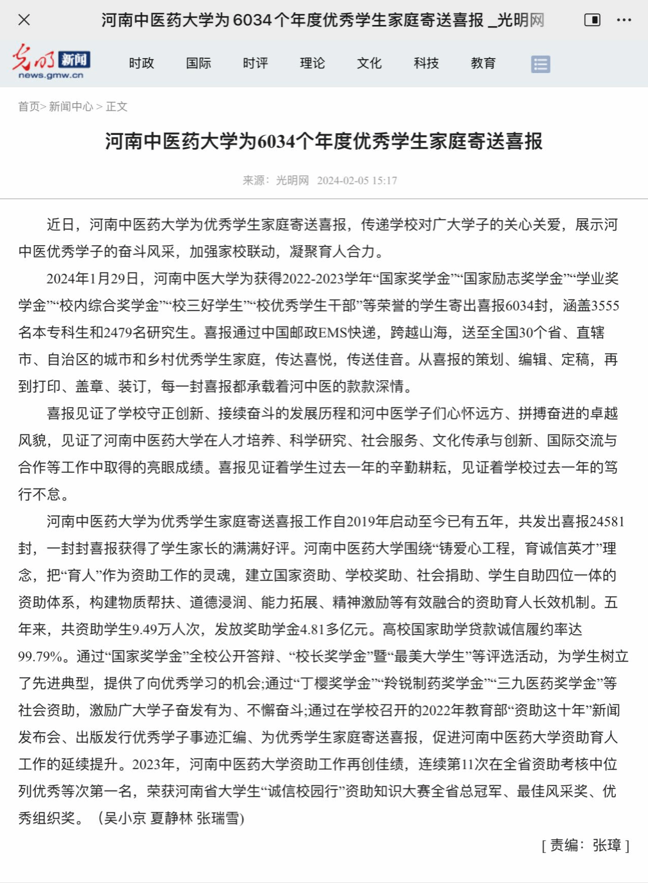 光明网丨乐动网页版登录入口,乐动(中国)为6034个2023年度优秀学生家庭寄送喜报