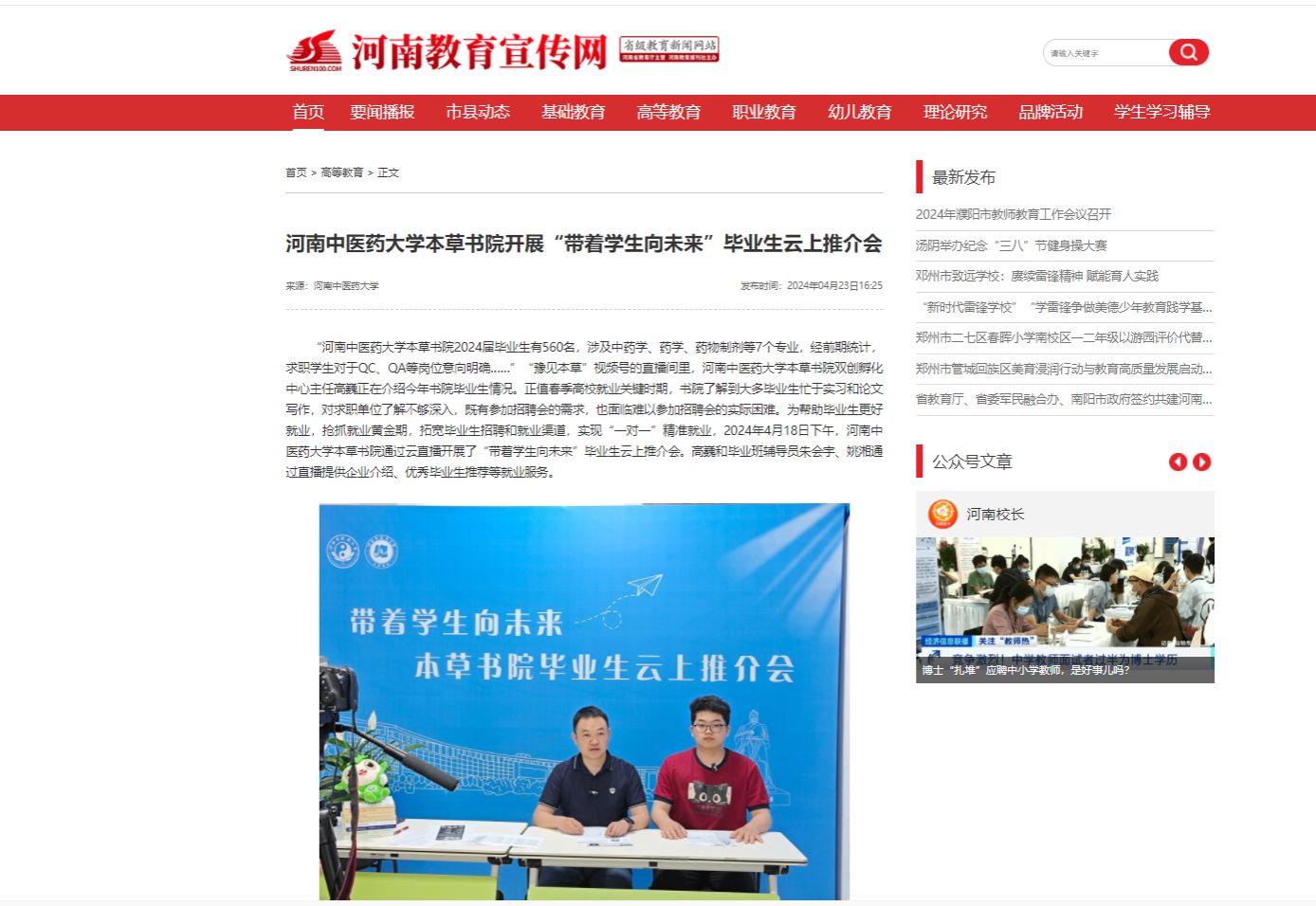 河南教育宣传网丨乐动网页版登录入口,乐动(中国)本草书院开展“带着学生向未来”毕业生云上推介会